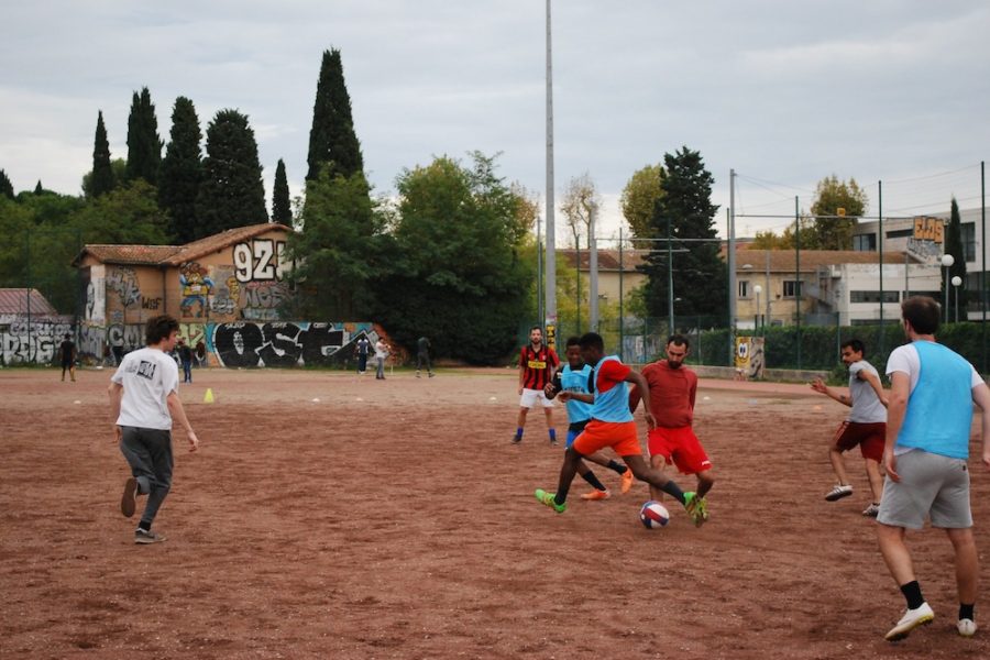 22 novembre 2019 : Presse numérique – Derrière le sporthttps://derrierelesport.net/2019/09/26/tu-recevras-toujours-une-passe/ « Tu recevras toujours une passe ! » 21 novembre 2019 : Presse papier – La Gazette de Montpellier « Enquête sur la condition des mineurs étrangers à Montpellier » 20 novembre 2019 : Passage à la radio Le Football du Peuple sur « L’Écho des Garrigues » dans l’émission « Eko Logique » ! 11 novembre 2019 : Presse papier – Ouest France Normandie Quand « Le Football Populaire de Caen »invite Le Fooball du Peuple de Montpellier 25 octobre 2019 : Passage à la radio Le Football du Peuple sur « Divergence FM » dans l’émission « L’auberge Éspagnole » ! 4 juin 2019 : Rencontre avec les Débuteuses « Un club de foot féminin venu de Lyon pour un dimanche après-midi au stade du père Prévost » Vidéo En match avec les Débuteuses 14 avril 2019 : Vidéo « Préférer la passe plutôt que le dribble ! » 31 mars 2019 : Publication du Foot du Peuple « Le Football du peuple s’opposeau projet du stade Louis Nicollin ! » 14 février 2019 : Presse numérique – Le Comptoirhttps://comptoir.org/2019/02/14/football-une-soiree-dans-les-locaux-du-menilmontant-fc-1871/ « Une soirée dans les locaux du Ménilmontant FC 1871 » 13 janvier 2019 : Vidéo « Présentation du maillot du Foot du Peuple » Photos Un dimanche au stade du père Prévost 11 janvier 2019 : PhotosRéception des premiers Maillots du foot du Peuple 5 janvier 2019 : PhotosSortie RugbyLe Foot du Peuple invité par le MHR 15 décembre 2018 : Presse numérique – Dialectikhttp://dialectik-football.info/football-du-peuple-montpellier-chez-nous-cest-laction-collective-qui-fait-la-beaute-du-but/ Football du peuple Montpellier : “Chez nous, c’est l’action collective qui fait la beauté du but !” 13 décembre 2018 : Vidéo « Historique du Foot du Peuple et explication des règles » Au « Barricade » lors d’une soirée de soutien au Foot du Peuple 27 novembre 2018 : PhotosNettoyage du stade du père Prévost 11 novembre 2018 : PhotosUn dimanche au stade du père Prévost 16 septembre 2018 : PhotosTournoi à Villeneuve les Maguelones 24 juin 2018 : PhotosUn dimanche au stade du père Prévost 17 juin 2018 : Presse numérique – La Grinta https://lagrinta.fr/football-du-peuple-goal-refugies-et-anarchisme&7245/ «Football du peuple » : Goal, réfugiés et anarchisme ! 3 mai 2018 : Presse papier – La Gazette de Montpellier « Football : ils jouent avec les réfugies » 25 février 2018 : PhotosUn dimanche au stade du père Prévost Le Foot du Peuple accueille « Absense Supporters » 1 décembre 2017 : Presse papier – La Bavette des beaux-arts « Le Foot du Peuple est ouvert à tous » 15 avril 2017 : PhotosTournoi interassociation au stade du père Prévost 9 avril 2017 : Vidéo « Réfugiés à Montpellier, le football les rassemble ! » 1 avril 2017 : PhotosUn tournoi au stade du père Prévost 11 décembre 2016 : PhotosUn dimanche au stade du père Prévost 17 septembre 2016 : PhotosUn samedi au stade du père Prévost La rentrée du Football du Peuple au stade du père Prévost 16 septembre 2016 : Presse numérique – Pressoir https://lepressoir-info.org/spip.php?article51 « Fête de rentrée du Football du Peuple Montpellier ! » 16 janvier 2016 : PhotosUn samedi au stade du père Prévost 3 mai 2015 : PhotosUn dimanche au stade du père Prévost 6 mars 2015 : Publication du Foot du Peuple"Annonce de l'Assemblée Générale du mois de mars !" 12 février 2015 : Presse numérique – Le Poing https://lepoing.net/le-football-du-peuple/ « Le foot sans insultes, discriminations, mauvais coups… Seulement de la solidarité et de la bonne humeur ! » 9 juin 2014 : Vidéo « Boycott FIFA2014 »En soutien aux Brésiliens et Brésiliennes en lutte contre le football moderne et pour de meilleures conditions de vie.